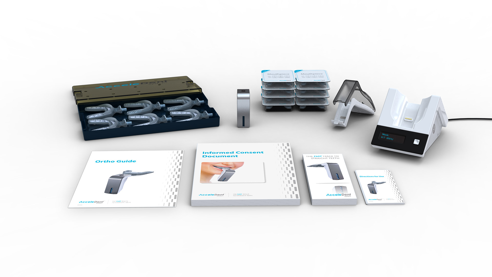 Industrial Design of AcceleDent, Travel Case and Charging Base; Branding and Graphic Design of Collateral Materials. Metaphase Design Group, Role: Co-Design Lead with David Kusch.