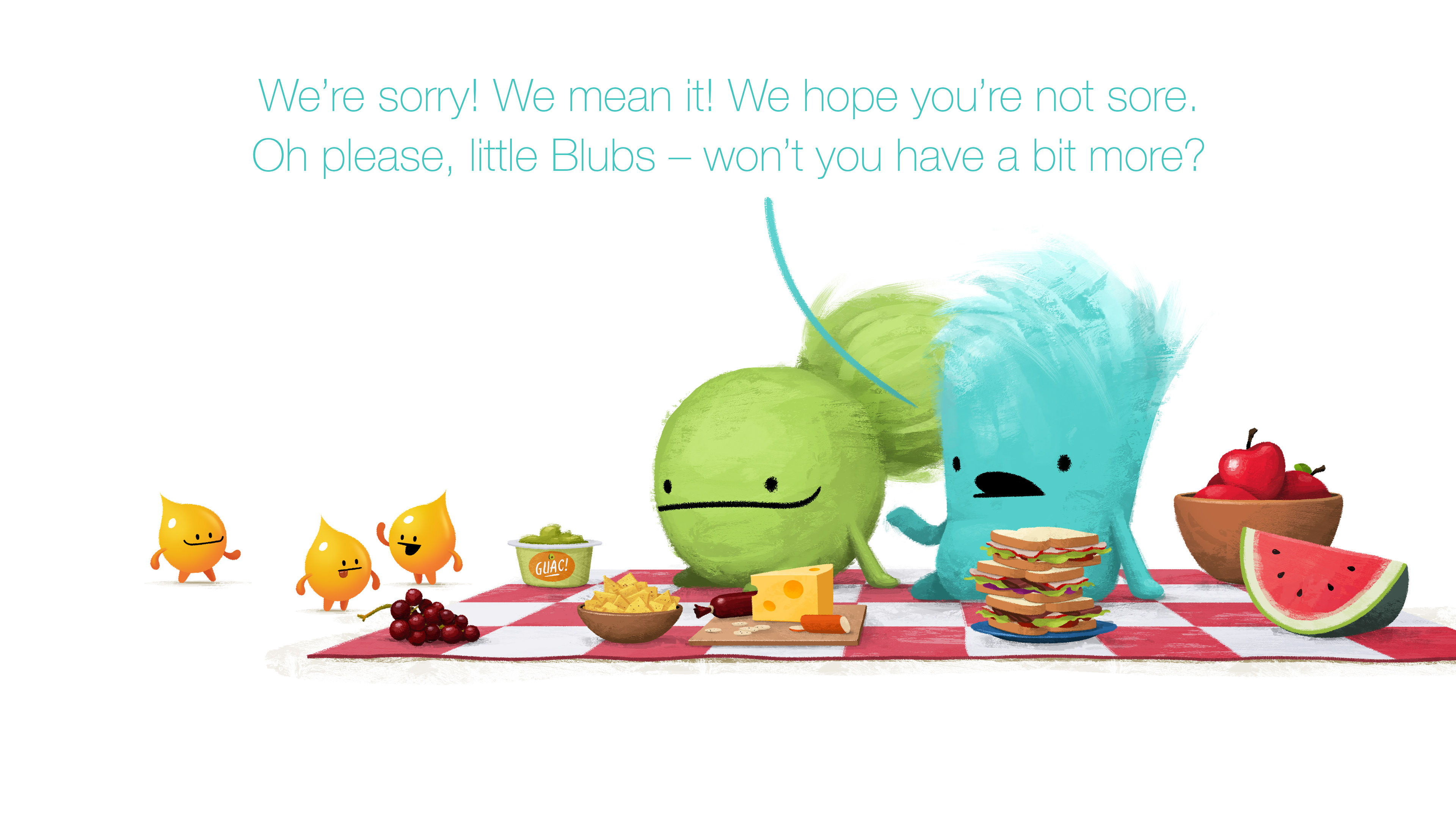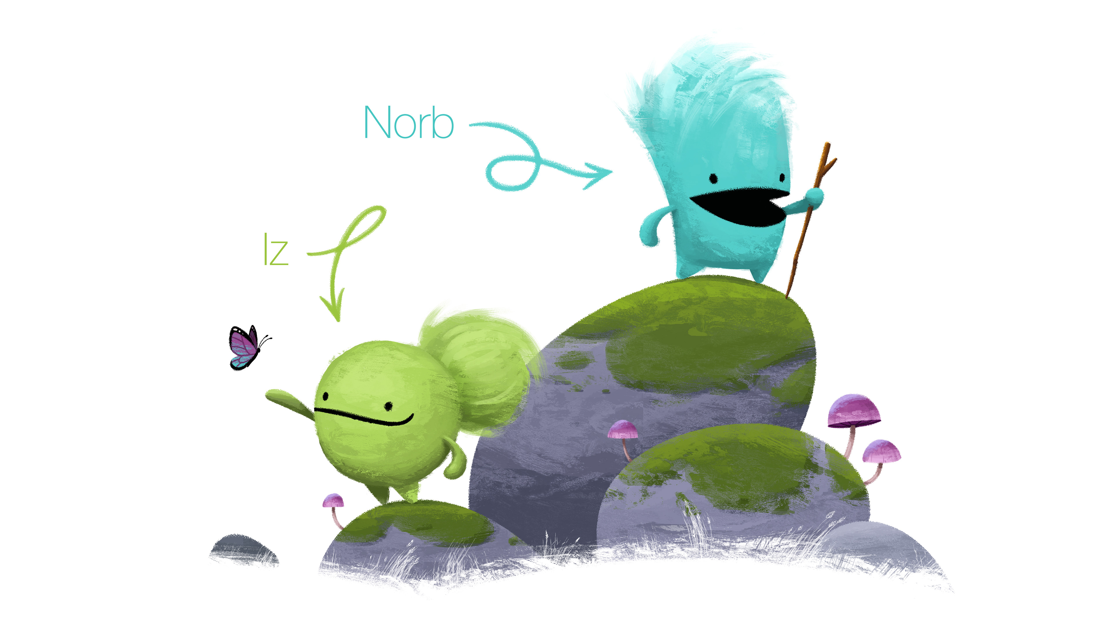 Visual development and final images for a children's book I wrote and illustrated called What are Blubs? Norb is about to have a snack but a speedy critter swipes his grub! Iz thinks it was a Blub. What are Blubs? As they search for these squishy little mysteries, Iz and Norb learn how their actions impact others, how to take care of nature and the importance of generosity. This is the third book in the Iz and Norb Series.