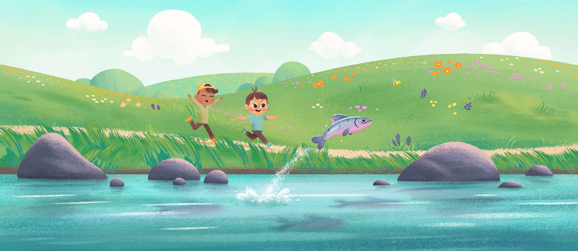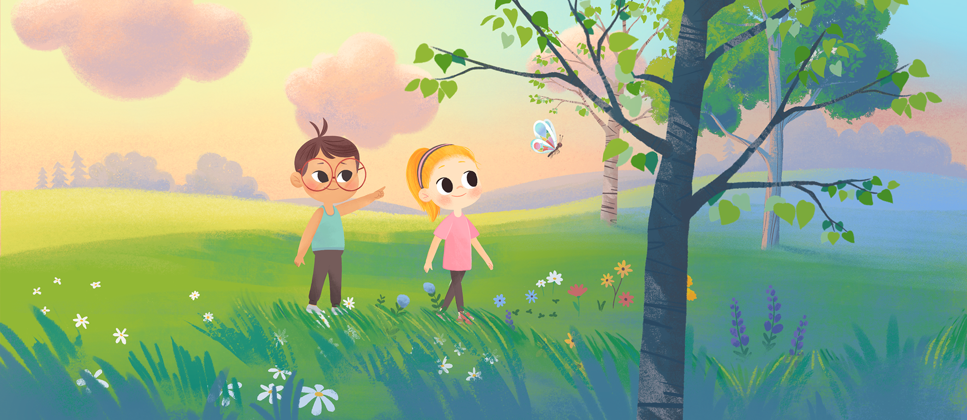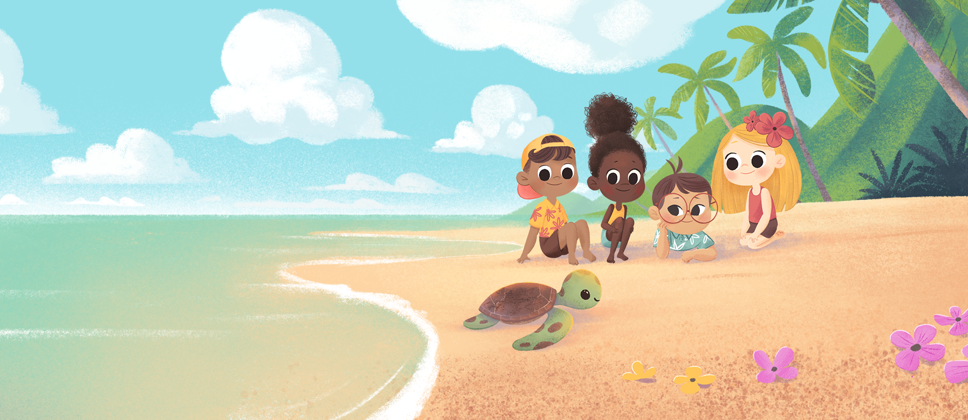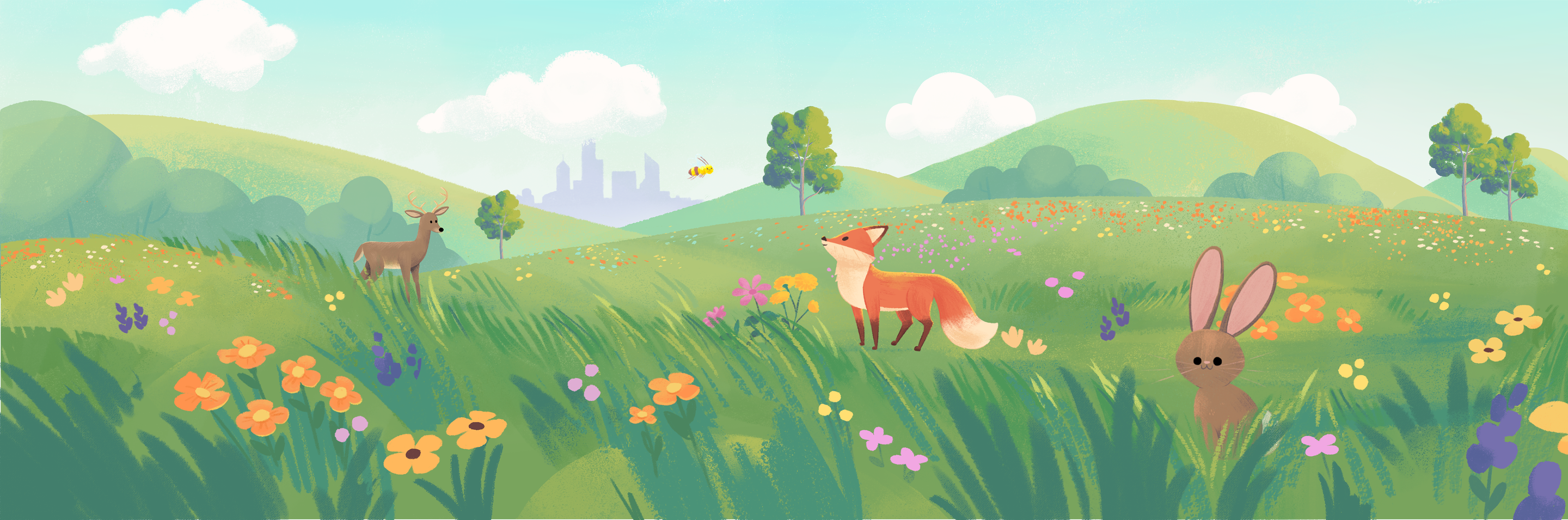 Illustrations for the Wonder Bunch theme song. These were based on storyboards by Caleb Coppock and a world developed by Skylar Hogan and the Wonder Bunch team.